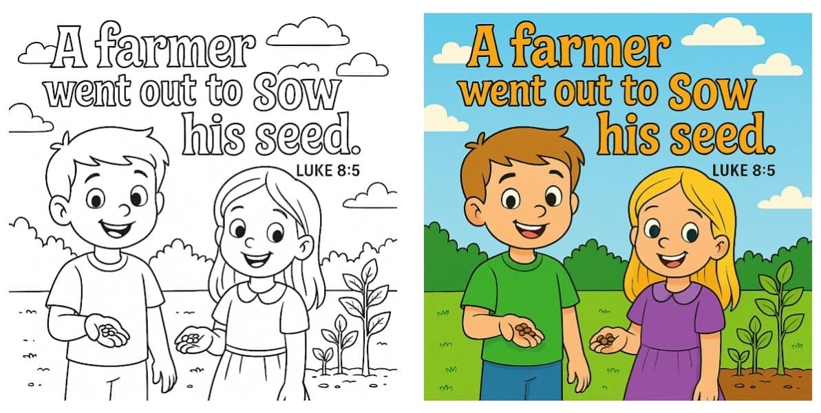 You can use them to produce coloring pages, devotionals, or even full books. And with one extra instruction, you can instantly generate a colored version of the same artwork — perfect for covers, ads, or gift editions.